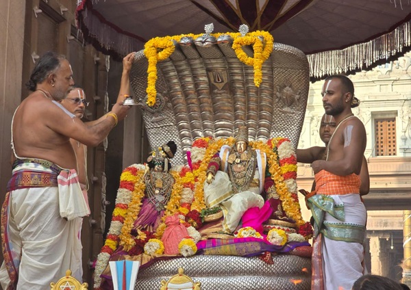 श्री रंग मंदिर ब्रह्मोत्सव: शेषनाग वाहन पर विराजे भगवान गोदा रंगमन्नार